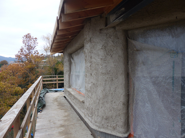 mise en oeuvre Guilhem Libourel (Maison paille - ossature bois ) et Frédéric Faure (Enduits chaux et enduits de terre. Accompagnement de chantier.)